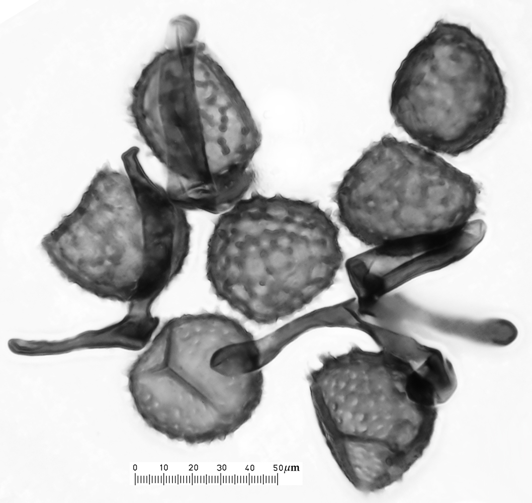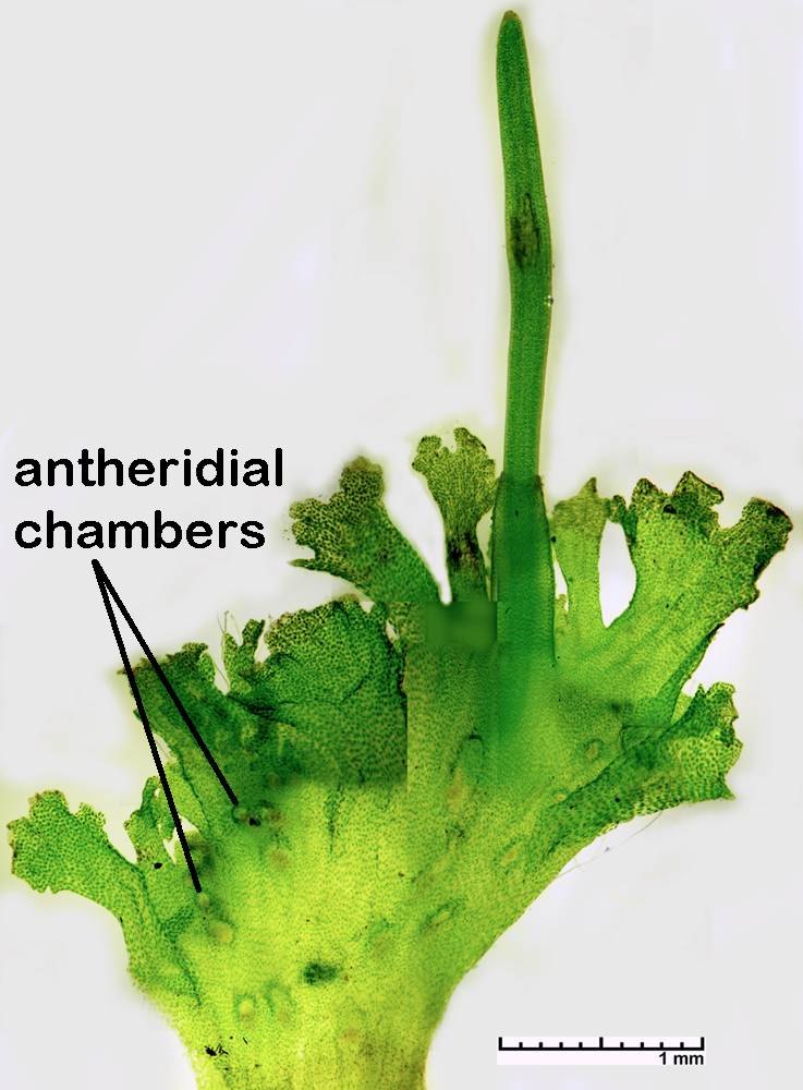 Hornworts 1b stalked ventral tubers absent > Hornworts 2a spores black > Anthoceros 1b spores smooth on proximal face > Anthoceros punctatus