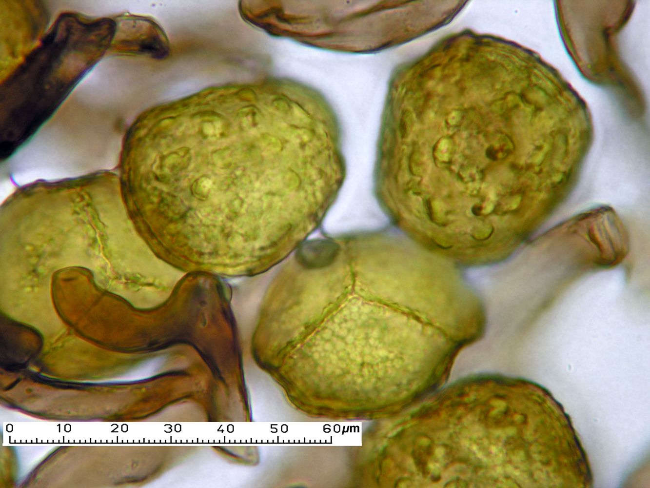 Phaeoceros hallii - Spore, distal view. Slagle Creek, Jackson Co., Oregon. DHW 9579.