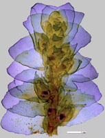 Porella bolanderi. Female shoot. Pickett Creek, Josephine County, Oregon. D. Stone 4155.