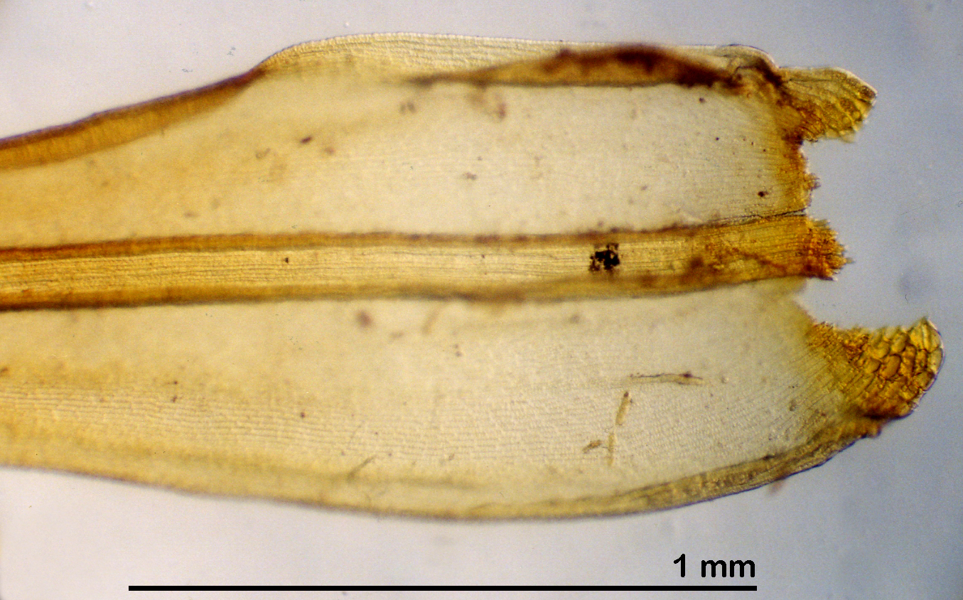 HOME | 1b hair points not dentate >2b high, conical papillae lacking > 5a leaves muticous > 6b pellucid basal marginal border lacking >